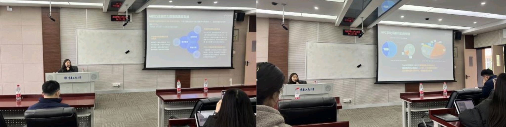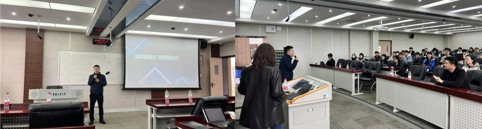 2023年12月12日下午2:30,sunbet邀请中科曙光的欧远洲、曲晓宇两位企业代表,在明智楼405教室举办了以“深算新能力,数智新动力”为主题的学术讲座。本次活动由秦华锋经理主持,全体研一、研二年级员工到场参加。