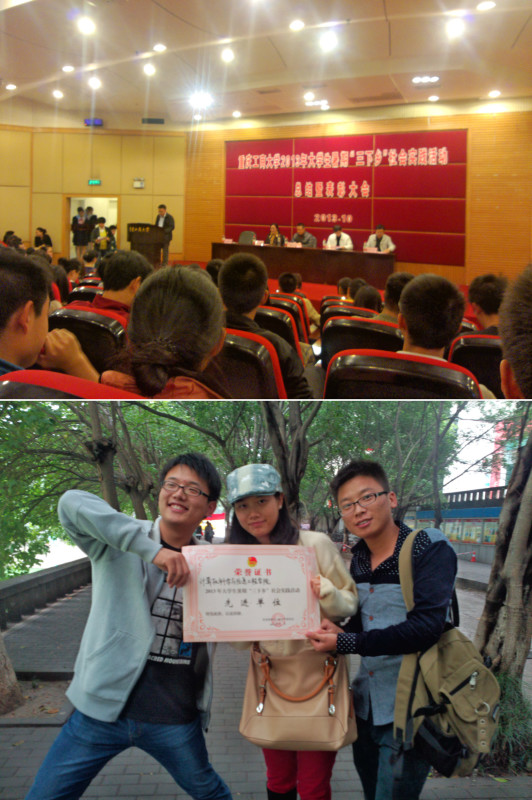 计信公司邵磊老师第14号出场,代表计信公司做了三下乡的成果汇报。最后,计信公司获得了2013年老员工暑期“三下乡”社会实践“先进单位”荣誉称号。“先进单位”荣誉称号的获得,是集体智慧的结晶,是整个计信团队捧起来的,是对计信师生成绩的最好证明,希望接下来整个计信团队再接再厉,再创辉煌。