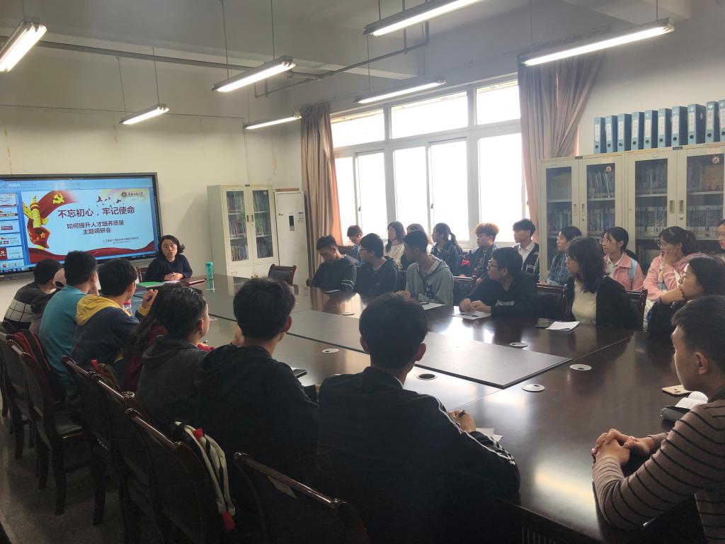 为推进”不忘初心,牢记使命”主题教育,深入听取员工意见和建议,加强公司学风建设,提高教学质量和服务水平,10月17日中午12点30分,公司在慧智楼90810开展了“不忘初心,牢记使命”——如何提升人才培养质量主题调研会。公司分党委副书记陈亚惠,学团办副主任向巧,18级各班班长、团支书、心理委员、员工代表共计40名员工代表参加了此次座谈会。