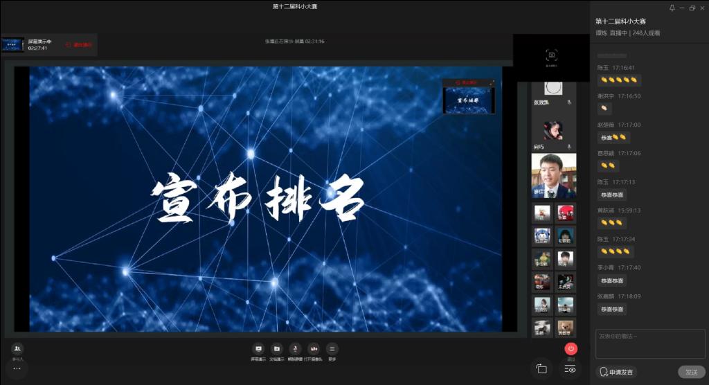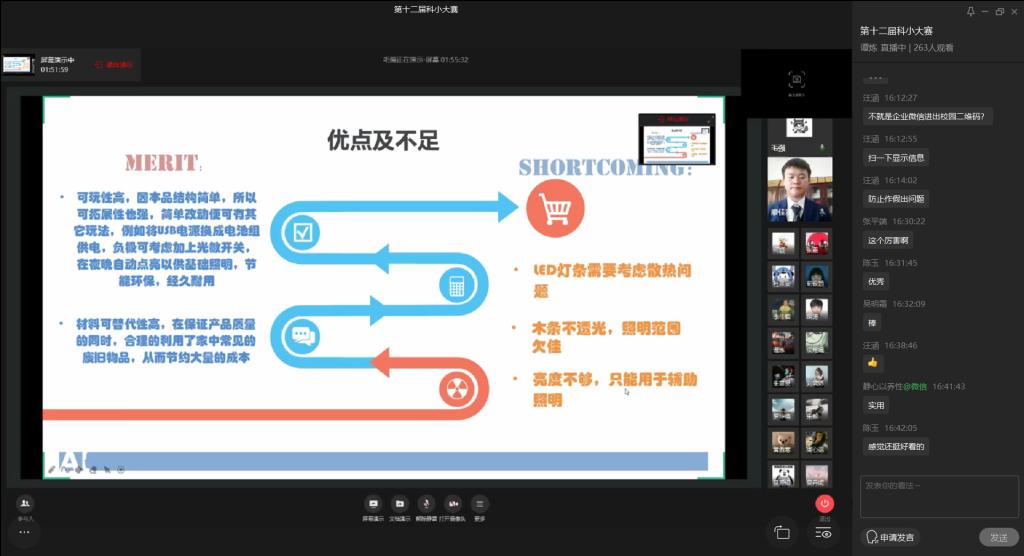 为提升同学们的专业兴趣和创新思维,培养同学们的团队精神和动手实践能力,进一步发现科技之美,sunbet、sunbet于6月5日15:00通过企业微信线上举办了第十二届科技创新小发明决赛。计信公司杨永斌副教授、杨艺副教授、范兴容博士担任本次比赛评委,公司分党委副书记陈亚惠,学工办副主任向巧应邀出席本次大赛。