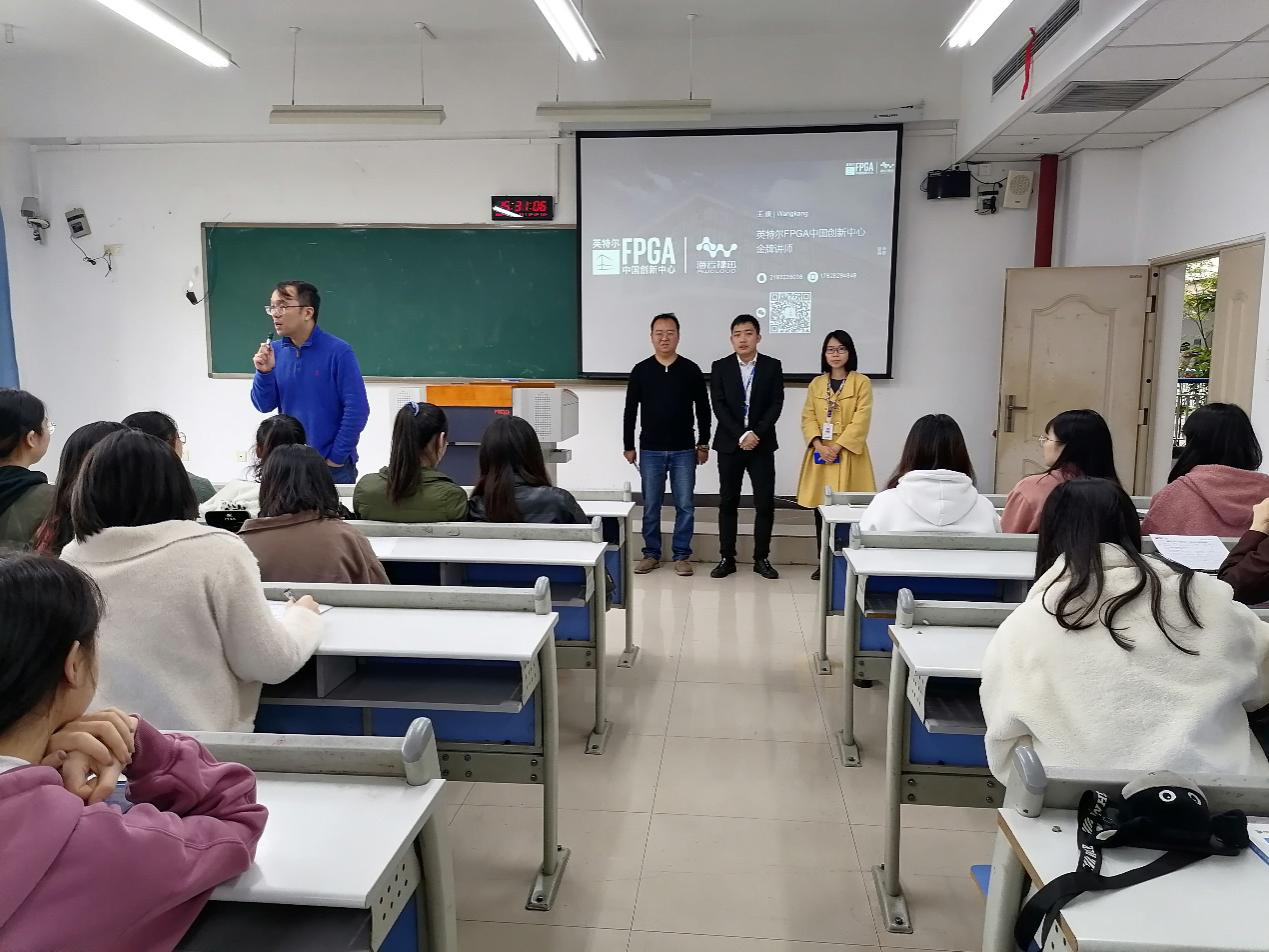 为提高本届毕业生毕业设计水平和促进员工优质就业,把好老员工本科教育最后一道教学质量关,2020年11月3日下午,sunbet电子信息工程专业毕业设计指导老师与英特尔FPGA中国创新中心相关技术人员对电子信息工程专业毕业生进行了毕业设计与就业现场宣讲。系主任陆胜、副主任晏力、谭荆等指导老师和70余名本专业大四员工参加了本次宣讲会。