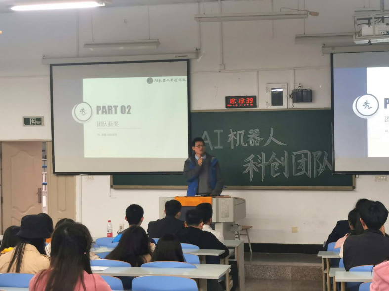 通过范老师的介绍和AR团队在一年之内荣获30余项国家级省部级竞赛奖的成果展示,现场140多名同学对AR团队和人工智能竞赛有了更深刻的了解,并对人工智能竞赛表现出极高的热情。