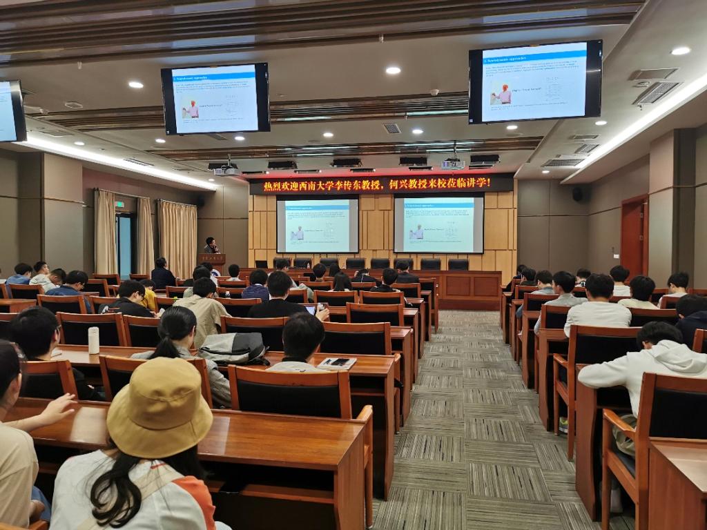 2021年4月27日下午,西南大学电子信息工程公司经理李传东教授、西塔公司副经理何兴教授应邀来公司开展了“脉冲系统理论研究的一些进展”和“惯性神经动力学算法理论及其在稀疏信号重构中应用”的学术讲座。讲座在新图书馆第一会议室举行,sunbet百余名师生聆听了讲座。讲座由sunbet经理唐亮贵主持。