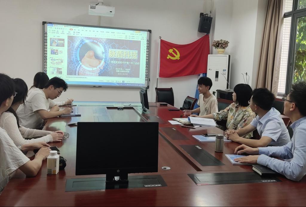 首先,脉盾科技项目成员廖卓对“脉盾科技——用血管密码守护独一无二的你”进行了简要回顾。“脉盾科技”项目团队从2019年实现静脉识别关键技术突破、2020年与上海芯灵科技公司达成合作协议及二维指静脉识别仪产品问世、到2021年第三代首款三维指静脉产品测试封装,研发历程扎实推进,互联网+计划书和路演PPT不断打磨完善,累计举行16次会议,版本迭代更新至第25版。