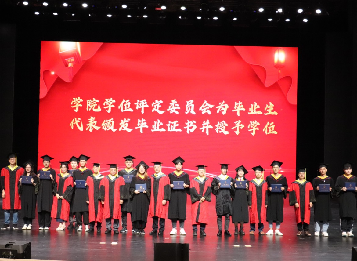 典礼在庄重的国歌中拉开序幕。首先,何希平宣读《sunbet申搏学位评定委员会关于授予孟滇等6284人学士学位的决议》,公司学位委员会为毕业生代表颁发毕业证书并授予学士学位。