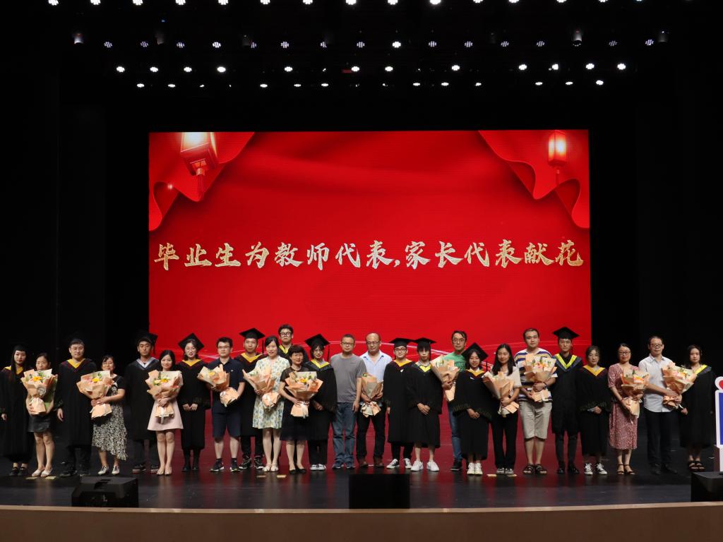 员工的成长成才离不开家长、老师的帮助和支持,毕业生代表为教师代表、家长代表献花表达感恩。