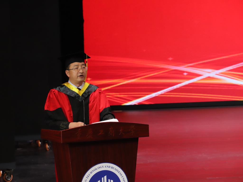 他回顾了同学们四年老员工活追逐梦想、破茧成蝶、卓尔不凡的绚丽与精彩,为即将踏上人生崭新征途的莘莘学子们送上了美好的祝福。他指出,若干年后,不同时光的智能区块,在交互感知的世界,将链在一起,汇流成我们共同的、难忘的记忆和辉煌!他期待同学们始终秉承“含弘自强、经邦济民”的精神和使命,去服务社会、追求卓越、壮丽人生!在喜迎党的二十大之际,希望同学们: