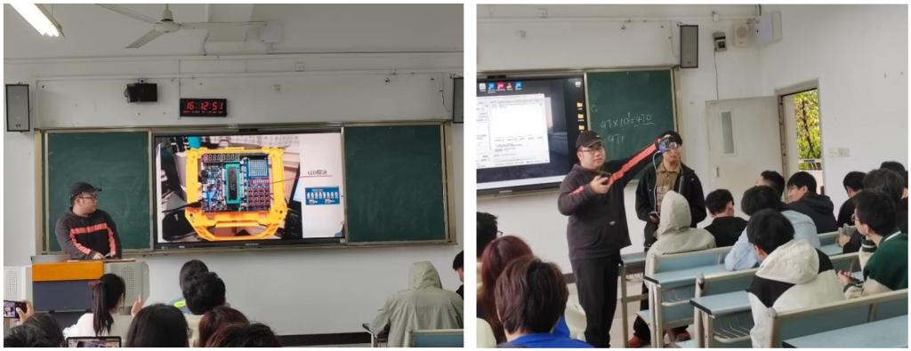 图4 梁瑞峰同学现场教学演示单片机点亮LED灯项目