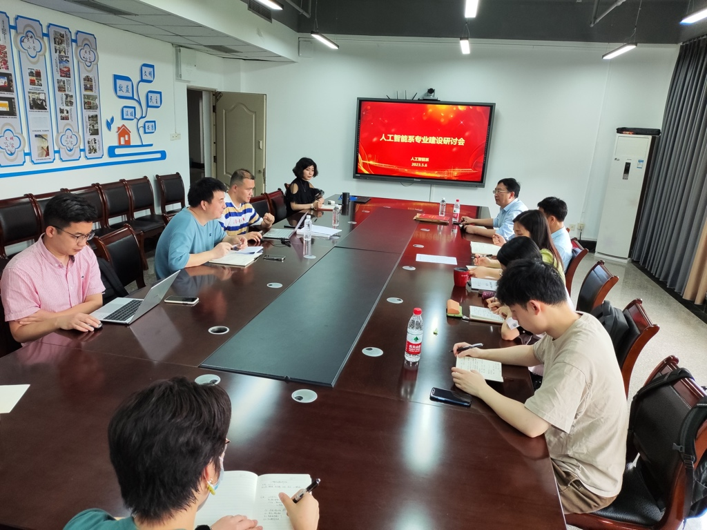 会议上,杨军超老师首先针对人工智能系下辖新专业——人工智能专业做了专业调研报告,对该专业的专业建设和团队建设情况作了汇报。紧接着刘波主任就人工智能系部的基本情况进行了介绍,着重强调了系部在团队、专业建设、课程建设、科研建设等方面的成绩与困难。人工智能系其他专任教师也结合自身情况就教学和科研中的问题进行了讨论和交流。