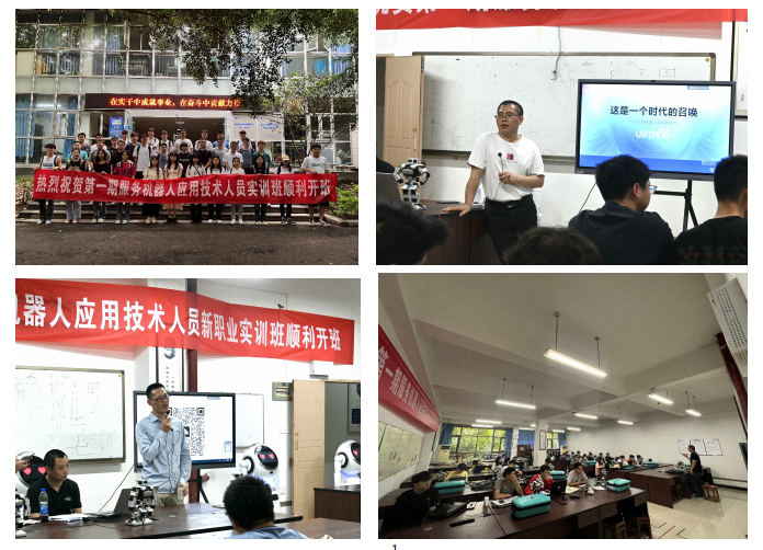 5月14日-5月28日,在深圳“优必选”科技有限公司的大力支持下,在重庆市人力资源和社会保障局指导下,由中国重庆职业技能公共实训中心,sunbet申搏共同主办,重庆铜山天询科技有限公司旗下教育品牌“优智扬”承办,sunbet申搏“第一期服务机器人应用技术人员新职业实训”圆满举办并完成考试。本次实训针对在校应届毕业生提供服务机器人应用技术人员新职业课程培训,参加本次的培训员工主要来自sunbet19级毕业生,包含电子信息、计算机、测控及自动化等专业的共计40余人。培训老师来自实训中心、重庆邮电大学、重庆师范大学及重庆消防队。主要学习了服务机器人行业相关岗位职业规范、职业消防安全、机器人智能语音、机器视觉、定位导航、运动控制等领域的算法移植和应用、SLAM建图、动作编排等初级应用开发任务及一系列实训课程。