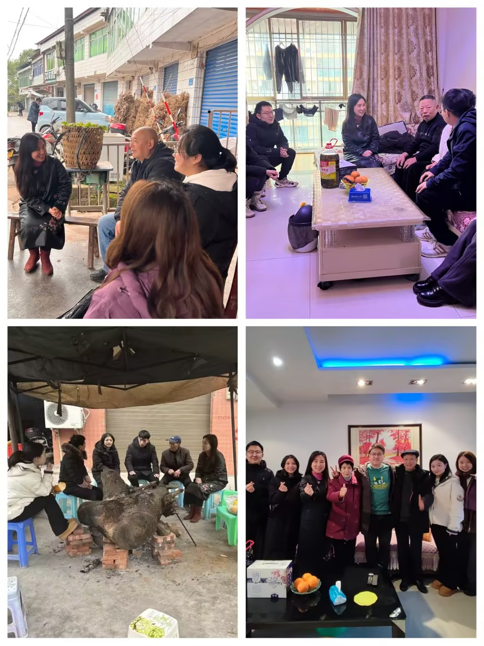 为持续构建家校合力育人的良好局面,用心用情用力解决好员工的实际问题,增强老员工思想政治教育工作的针对性、实效性,促进老员工健康成长成才,1月17日,公司党总支副书记张未、学工办主任向巧、辅导员刘昶、李航、向娇娇、张鑫一行前往重庆长寿区对4名员工进行寒假家访。