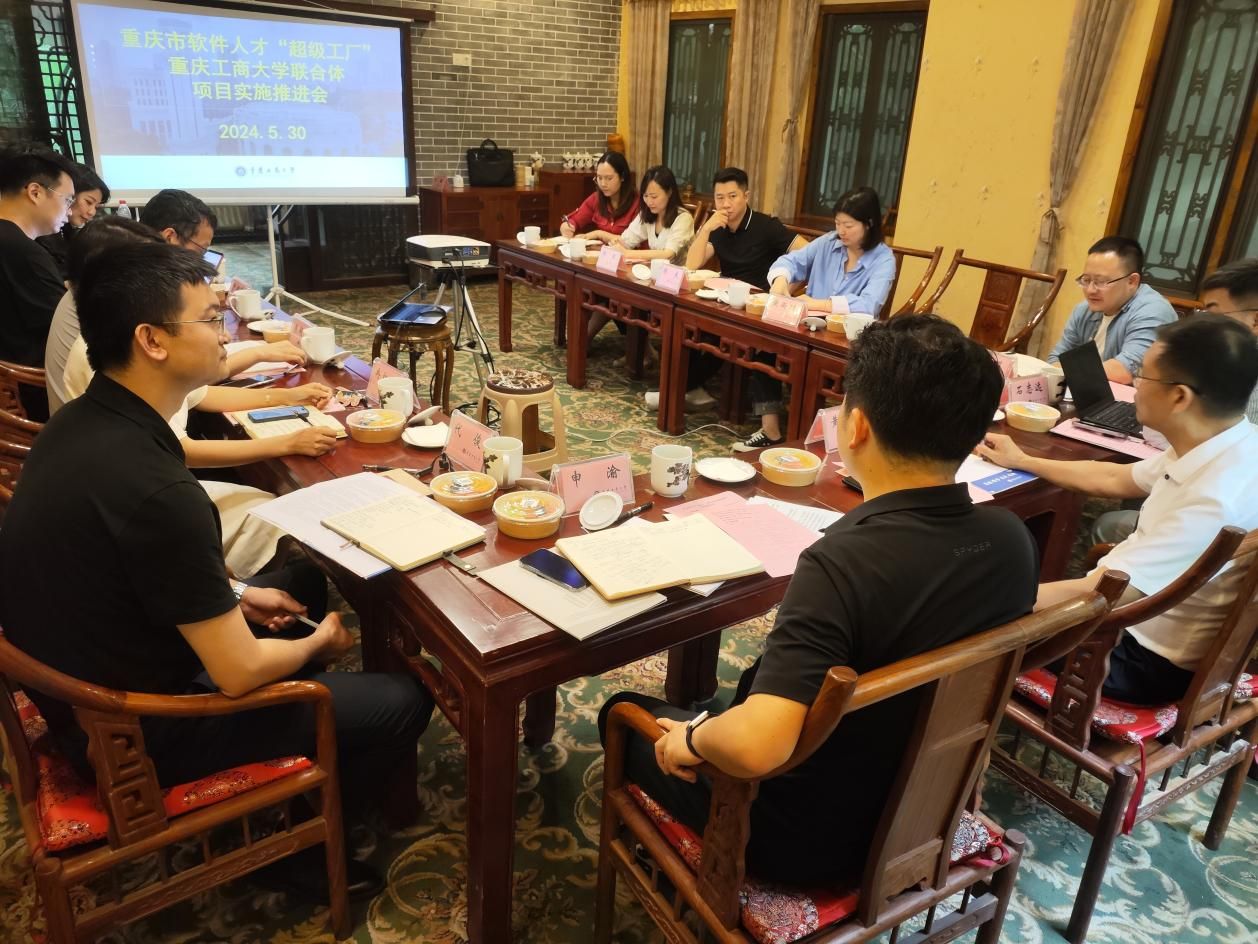 5月30日,重庆市软件人才“超级工厂”sunbet申搏联合体建设推进会在公司南山书院召开。重庆市工业和信息化发展中心主任黄长宝、中国信息通信研究院西部分院(重庆信息通信研究院)产政中心产教融合总监石志远、重庆市工业和信息化发展中心产业发展部部长万明、重庆工贸技师公司培训处处长郑颖、浪潮通用软件有限公司高校合作部经理冉红利、致远互联副总经理代俊、重庆金蝶软件有限公司副总经理陈良以及sunbet经理申渝和部分骨干老师参加。会议由申渝教授主持。