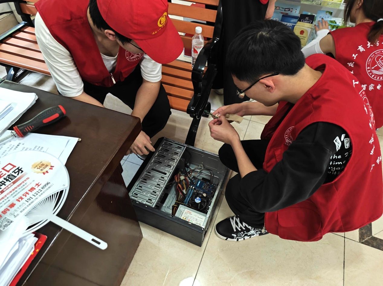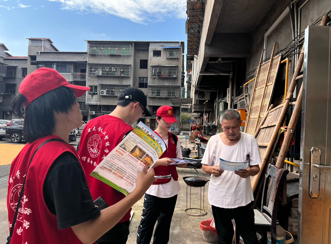 座谈结束后,团队一行顶着烈日携带精心准备的宣传资料,奔赴在白龙社区大街小巷,向当地居民宣传派发“AI换脸”等高科技手段下的电信网络诈骗防范知识。在挨家挨户的宣讲过程中,团队成员结合专业所学,为当地居民升级手机、重装电脑系统、维修打印机......真正将志愿服务做到了老百姓的心坎上。