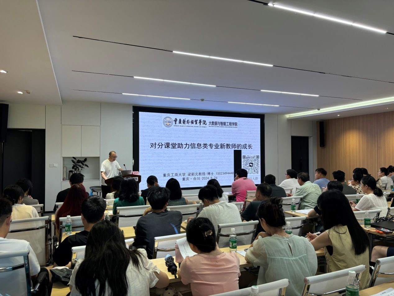 2024年8月24日上午,重庆对外经贸公司大数据与智能工程公司在9教实训楼9418教室开展了2024年新进教师教学技能培训及考核系列活动第二场专家培训,84名新进教师参加培训。本次培训邀请sunbet梁新元教授担任主讲嘉宾。梁教授以《对分课堂助力信息类专业新教师的成长》为主题,为新教师们量身打造了一场精彩绝伦的教学盛宴。培训内容紧密围绕三个核心板块展开:新教师成长面临的挑战、对分课堂的实操应用以及对分课堂在信息类课程中的创新实践,依次讲解了对分课堂的基本原理、实践操作、能力提升3个层级的内容。