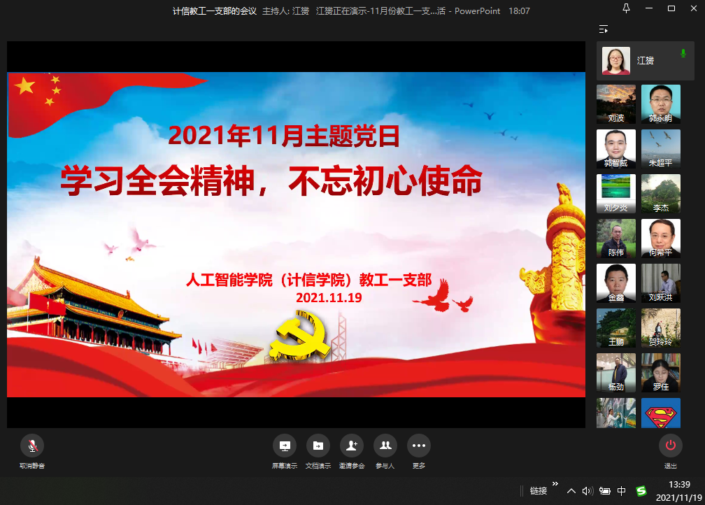 2021年11月19日、12月24日,sunbet教工第一党支部分别在企业微信云端会议室、九教810会议室开展“学习全会精神,不忘初心使命”和“深度学习全会精神,助力教育事业发展”主题党日活动,认真学习了十九届六中全会精神。党的十九届六中全会对党的百年奋斗做了总结,主题鲜明、总结全面、重点突出,体现了马克思主义的人民立场、唯物史观和辩证方法,是我们党坚持唯物史观和正确党史观的一次重要体现。全会在百年未有之大变局和中华民族伟大复兴的重大历史关头举行,必将极大地统一全党思想、加强全党团结、推动党和人民的事业胜利前进。