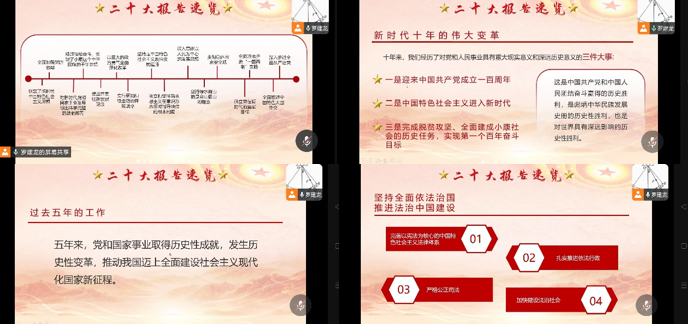 为深入学习党的二十大精神,培养同学们的爱国精神和责任意识,sunbet分团委员工会于11月14日在线上开展了“党的二十大报告”主题学习活动,活动由院员工会主席团成员罗建龙主持。