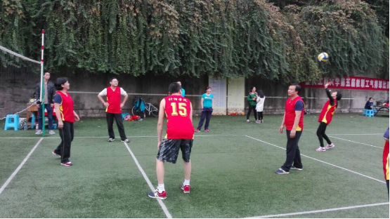 时5天。本次比赛采用男女混合组队参赛。每队每场比赛上场5人,其中女(或男)运动员在场上必须保持2名。第一阶段进行小组循环赛,第二阶段进行交叉赛(A1-C2,B1-D2,C1-A2,D1-B2),并决出前八名。经过抽签分组后,各公司参赛小组按照抽签顺序,于每个比赛日下午16点在主校区北区气排球场依次展开角逐。在五天的激烈厮杀中,公司教职工代表队始终敢打敢拼,徐帆老师还在比赛中扭伤了脚。最终,全体队员充分发扬顽强拼搏的体育精神,以小组赛全胜的佳绩挺进决赛,并最终在决赛中取得第六名的好成绩!