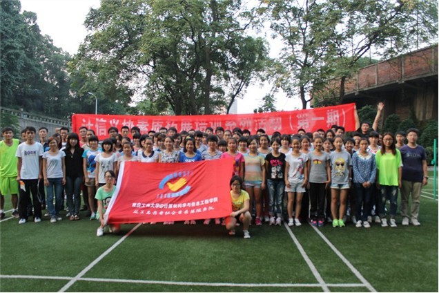 全体志愿者们于12点到达北区羽毛球场,经过简单的场地布置后,所有干部干事通过报数分为6个小组,“计信义协素质拓展活动”正式开始。志愿者们先后进行了串名字游戏,盲人方阵,勇于承担责任,踩报纸,疯狂的设计,地雷阵,五毛一块共7项活动。