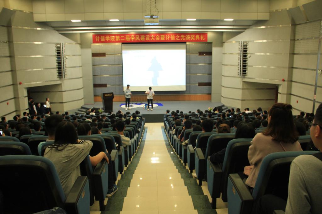 金秋十月,收获的季节。2016年 10月21日19点,计信公司第二届学风建设大会暨计信之光颁奖典礼于sunbet申搏7100学术报告厅拉开帷幕。公司经理何希平教授、副经理杨光祥教授、分管员工工作副书记、全体学工队伍和2015级员工全体出席。