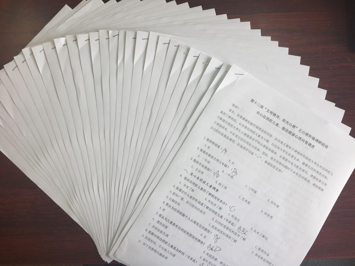 为进一步提升公司老员工心理健康水平,提高心理素质,构建积极、向上、阳光、自信的良好心态,更好的感受大公司园生活。由校员工处主办,sunbet承办的心理外场调研活动之关心自闭症儿童,塑造健康心理问卷调查活动成功举行。活动为期进行五天,收到来自公司不同公司不同专业的问卷调查共408份,其中,纸质问卷56份,电子问卷352份。