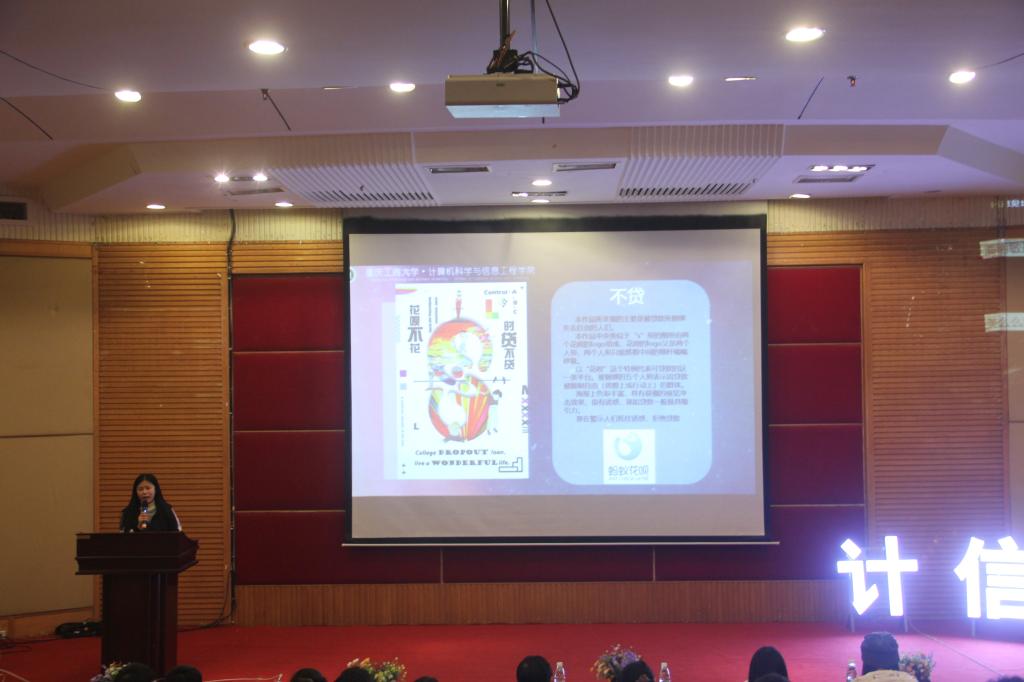 在决赛现场,选手们都通过自己独特创意用PPT展示了他们眼里的新四大发明,高铁、支付宝、共享单车和网上购物。选手们风格各异,有沉稳大气型、有幽默风趣型、有清新文艺型,现场观众时时发出热烈的掌声。海报组的选手则通过海报的视觉冲击效果和精彩的讲解,意在警示老员工抵住诱惑,拒绝“校园贷”,活动中唱歌和跳舞展示环节也十分出彩。本次活动采用了微信上墙的新颖形式,为观众提供了发表自己意见的舞台,实现了台上台下的时时互动。邹奇书记用诙谐幽默点评强调了视觉设计的创新、“设计构思”、“共情能力”等要点,将比赛氛围推向高潮。经过1个半小时的激烈角逐,主持人公布了此次视觉设计大赛的获奖结果。